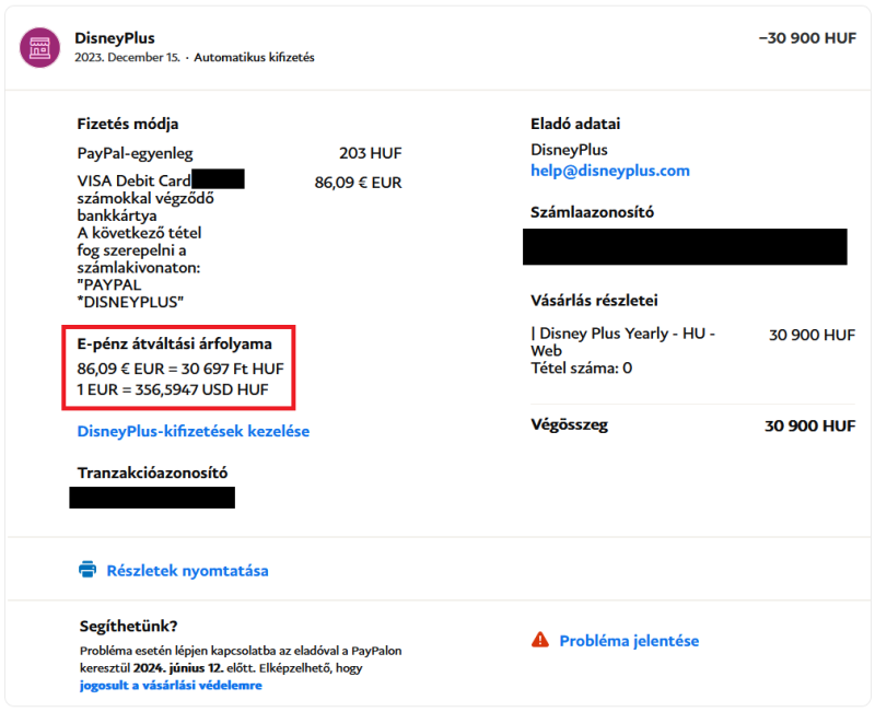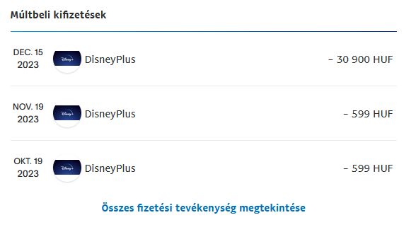 Igen, a Disney fiókomban 30.900 Ft van. A PayPal visszaigazolásban szintén. A számla magyar, és forint alapú.