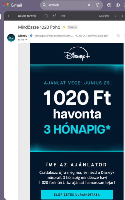 Lejárt az éves D+ előfizetésem, befagyasztottam a kártyát ahonnan vonni akarta, a 30900 Ft-os éves díjat már nem szeretném "bevállalni", alig néztük.