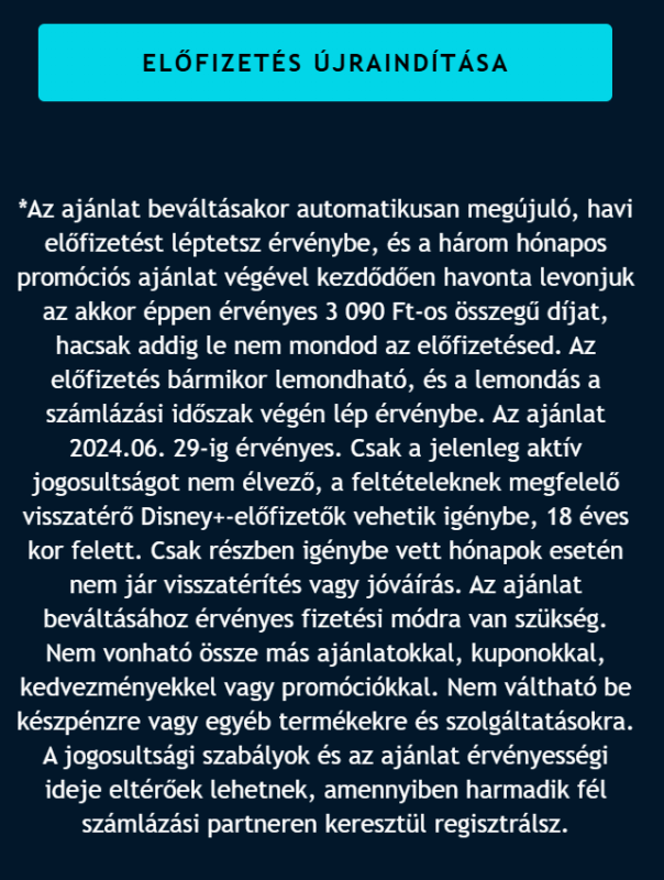 Nekem 3090 ft-ot vont le. Hiába indítottam újra az előfizetést.