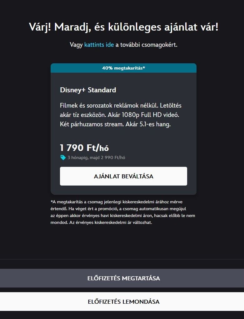 Leakartam mondani az előfizetést, erre feldobott egy 1790Ft-os ajánlatot 3 hónapra a standard csomagra.