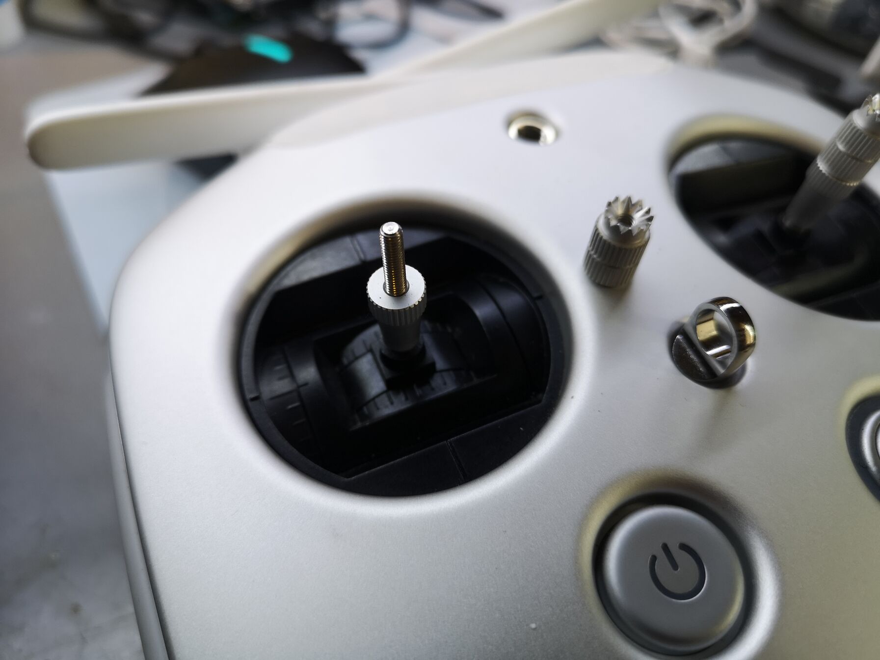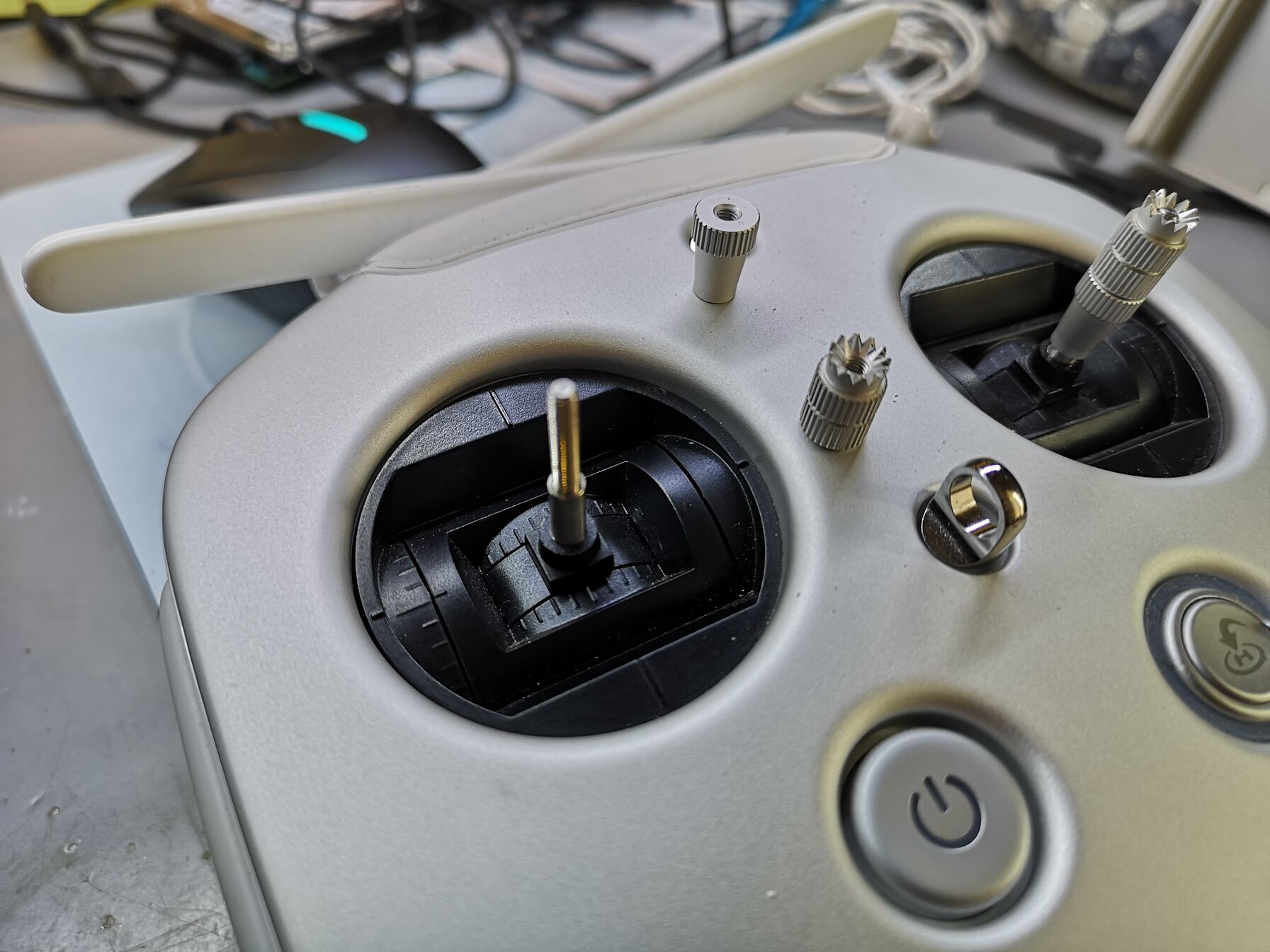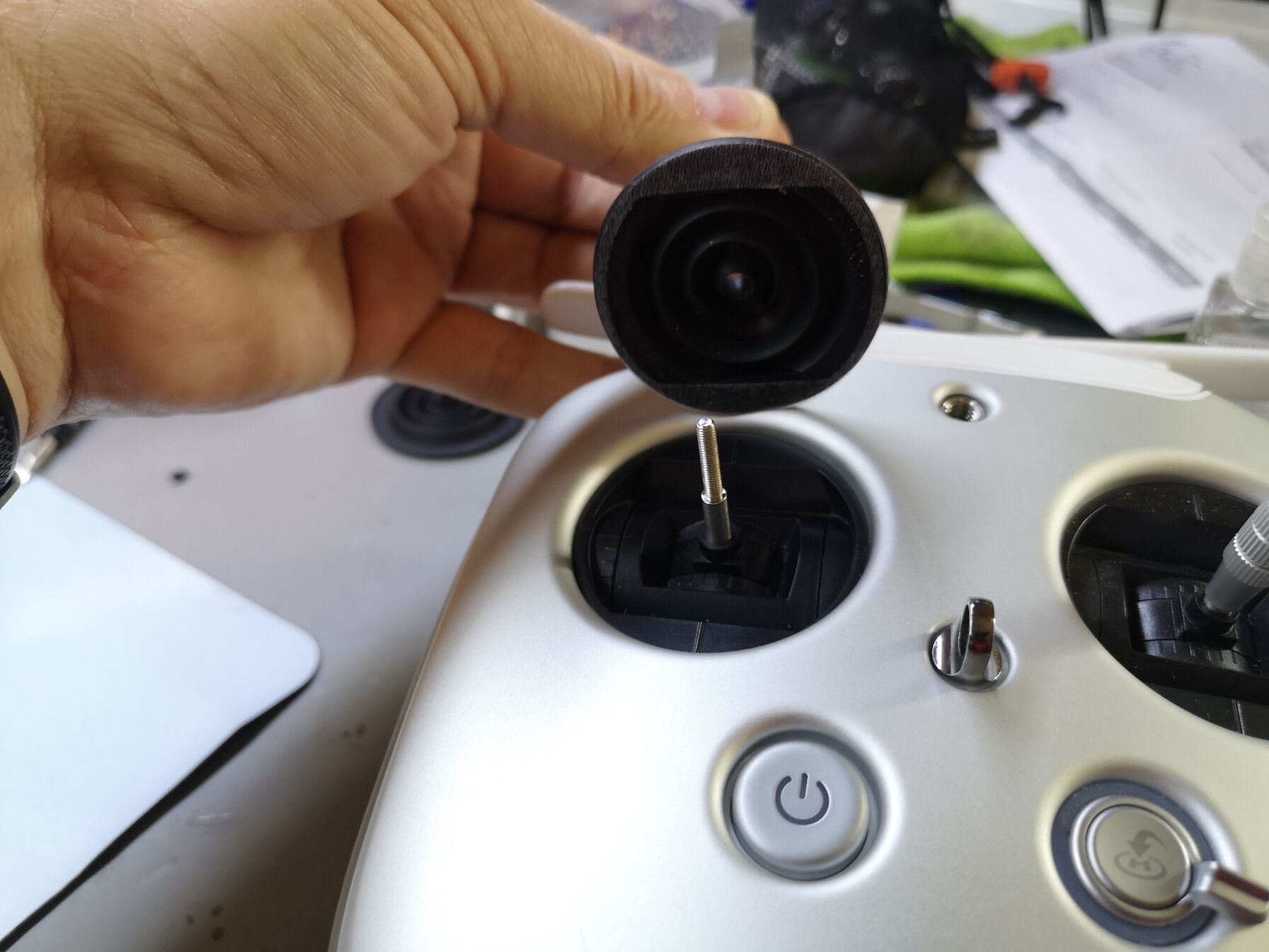 Mivel elég sokat reptetem építkezéseken a madaram és mondhatni nem patika környezetben ezért beszereztem két porvédő gumiharangot a stick-ekre, mert szerintem már van vagy fél kiló por a távirányítóban 😂