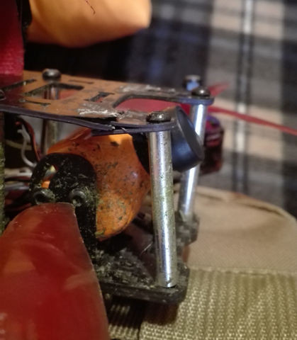 Eddig ott elől a gumibak lukain volt kihúzva szarvként, de készíteném a helyet az akciókamerának. Mert ha csak ilyen 10-en métert számít, akkor marad így, ha ez sokat ront, akkor valamit majd kitalálok. A VTX miatt túl messzire nem tudok menni.