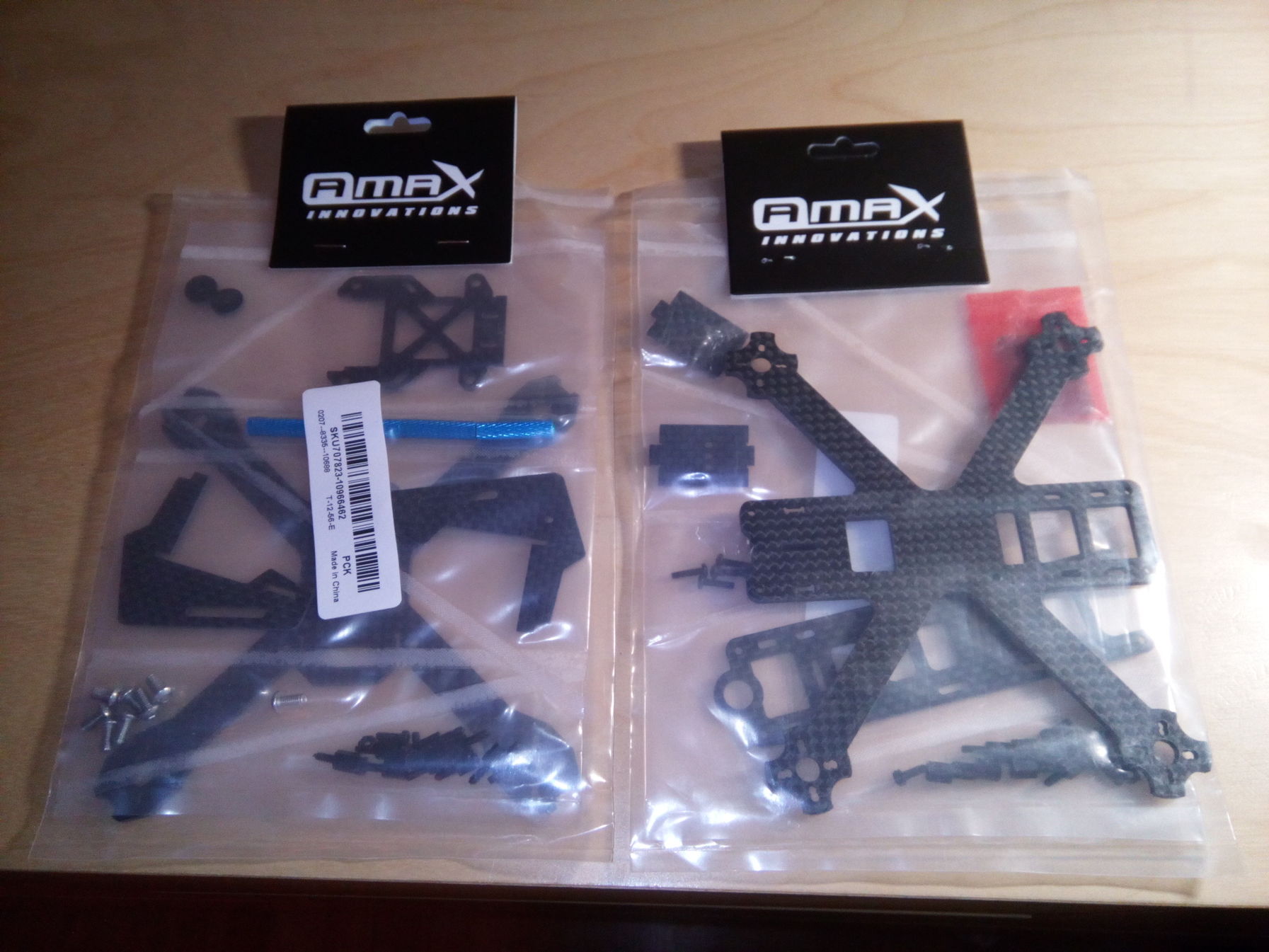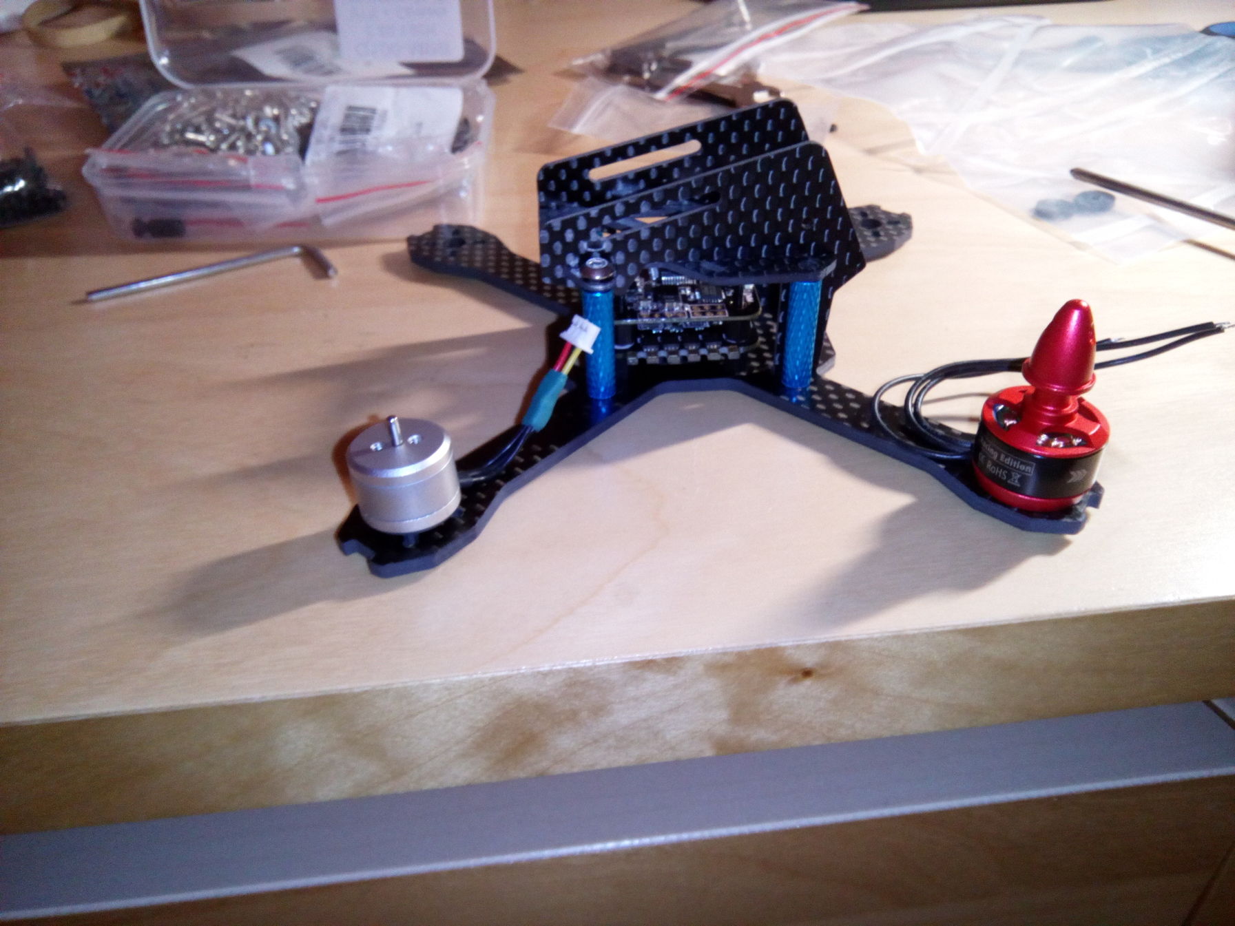 szoval a minoseguk ugyanaz vastagsag strapabirosag... csak az egyik az X designere hajaz a masik a "hagyomanyosra". A lukak ki vannak furkalva a karokon mind a 11 es 13 as motoroknak valszeg a 14-es is belemehet. a maximalis propeller meret a 3 col.... Tovabbi reszletek epites utan