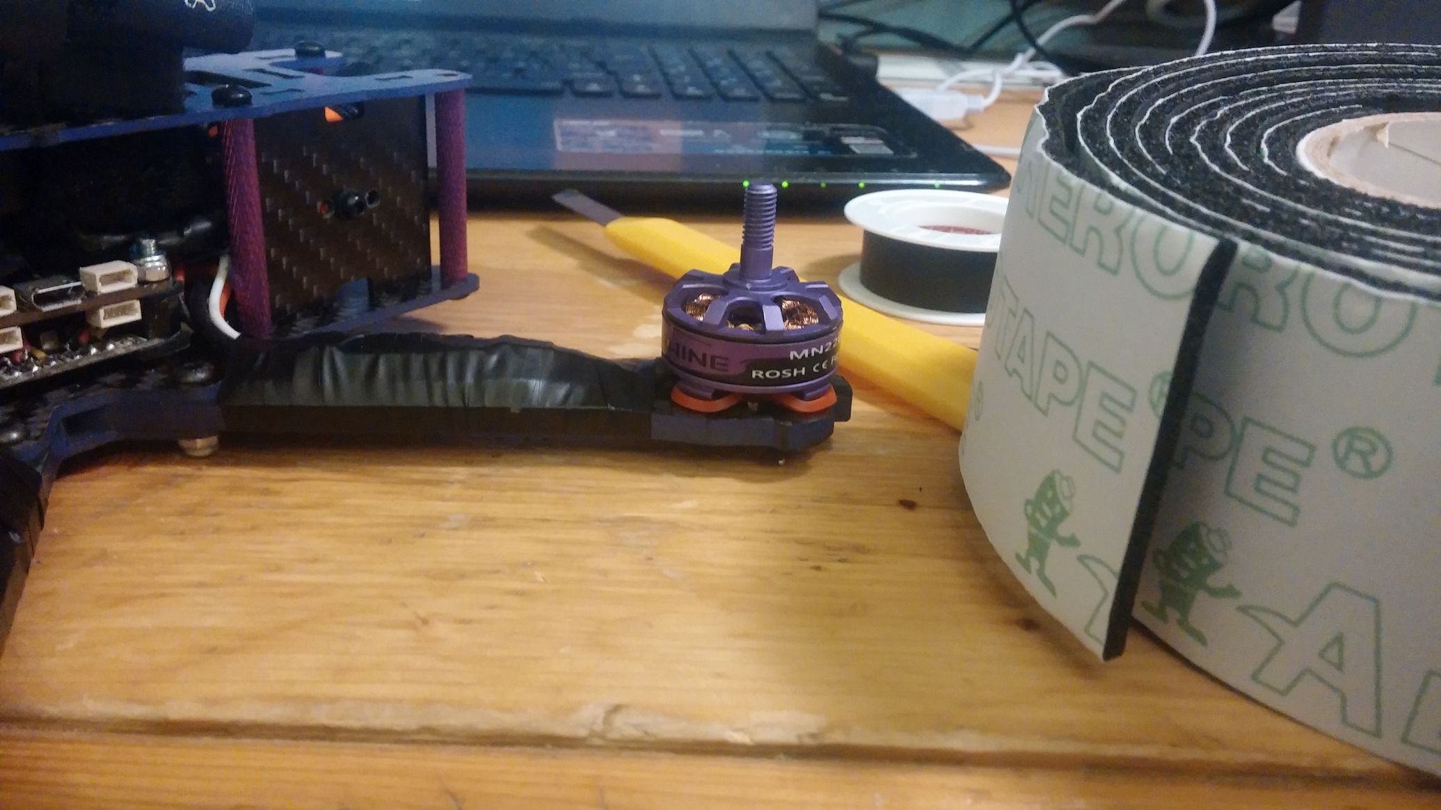 Szétbontottam,kiszárítottam,majd gyári motor-soft mount készletet méretre vágva rezgéscsillapítottam pdb-t,fc-t (mondjuk nem tudom ez mennyit ér),és pótoltam az egyik,rég hiányzó,ezeket leszorító anyát illetve eltörött távtartót abban reménykedve hogy esetleg rezgés okozta a bajt.