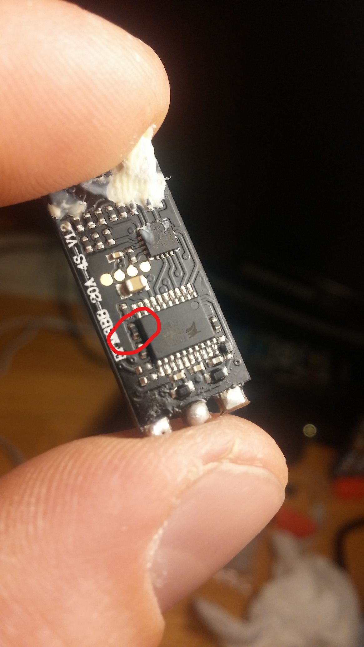 Első ötletelés a motorcserét eredményezte,de semmi nem változott.Mivel lehántottam a forrasztás miatt az esc burkolatát,észrevettem hogy próba közben nagyobb gázra szikrázik a jelölt helyen.