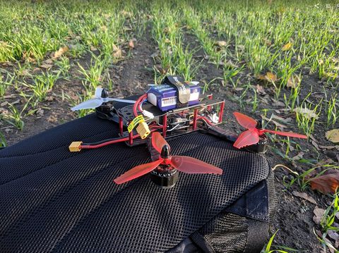 Tettem egy kis kört, majd toltam egy nagyobb kört, ahonnan kb. 50 méter után fordultam is vissza, mert ment el a kép. (VTX-probléma miatt az F36-om mikro AIO kameráját kapta meg ideiglenesen.) Éppen lassítanék, hogy leszálljak és csekkoljam minden oké-e, erre a levegőből pattanó hangot hallok. A haverom szól, hogy az egyik propeller levált. 1-2 másodperc múlva (lendület ugye...) én is éreztem, hogy ballisztikus pályára kerültem