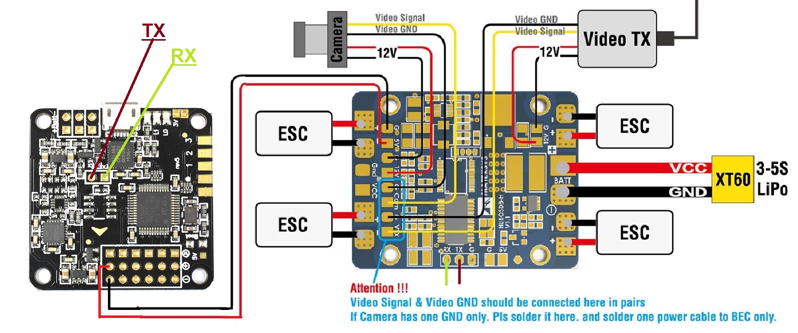 2. Másik kérdés az RX és TX jelek bekötése, azokat csak 1-1 ben a vezérlőről a PDB megfelelő ágai kell kötni és minden meg fog jelenni a kamera képén?