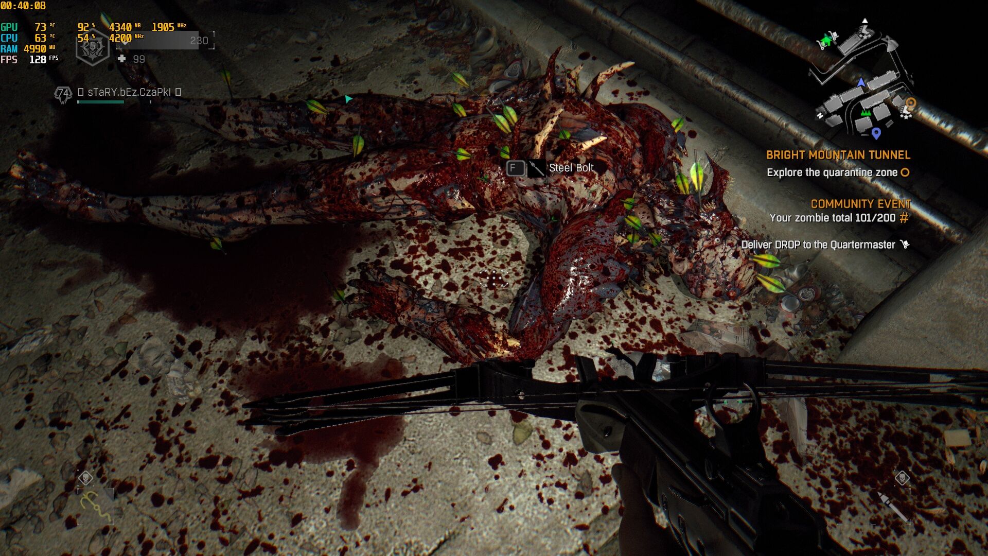 Most van egy Bozak íjam, amin 84k damage, ennél nagyobb cuccom nem volt még, sok elvetemült futkos még a játékban, egy modderrel is beszélgettem, kb mindent "le tud gyártani" és a legtöbb cucca jó multiban is, azt mondta zombiként is sok modder van, az életük sem fogy, nem véletlen single és coop ez a játék még mindig.