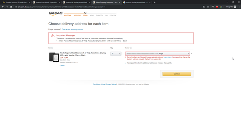 Viszont amit nem értek, hogy az Amazon.com-nál, ha kiválasztom a Hungary-t szállításnak, írja alatta, hogy menjek az Amazon.de-re, onnan tudnak szállítani. Átmentem, rákerestem, kosárba be, szállítási cím beír, erre írja, hogy nem szállít ide. Mi a gond?!