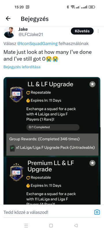 Bmeg, amikor már minden reményt feladtam, csináltam vagy 100 sbc-t, már ikonokat tettem pakkba, meg egyéb jó lapokat, akkor ma egy random 84x5-ből kiadott egy toty Bellinghamet.