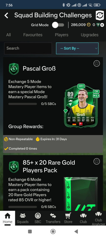 Amúgy azért nem értettem, mert ha bele megyek a játékos típusokba az sbc-nél, akkor van WL, DR, SB mastery, de van Mode mastery is.