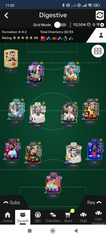 Hátvédsor háromnegyedét kukáztam. Jött vissza a kedvencem Goncalo, meg Nuno Tavares akit eddig még ki sem próbáltam és akinél csak most tűnt fel, h Rapid+ és Fullback++. Megvettem Hierrot is. Ez a lap egy cheat lett az upgradek után. Betonfal.