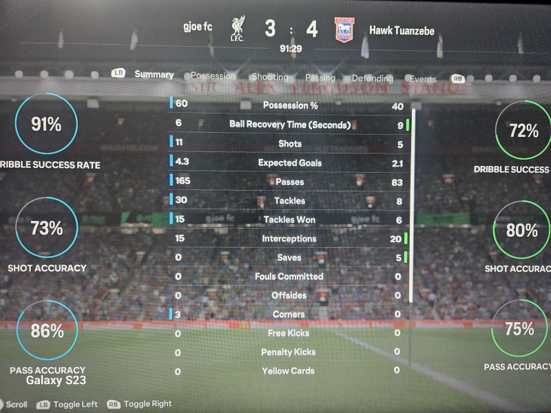 Nálam ma olyan történt a WL-ben, ami eddig sosem. 7-1ről fordítottam 10-9re egy 92. perces góllal. Az ellenfelem 6 lövésből 6 góllal indította a meccset. Egyszerűen éreztem, hogyha nem hagyom a kapumig jutni, akkor meg tudom fordítani. 8-8ra fel tudtam jönni, de ott is ő került előnybe. Végül 11 lövéssel zárta a meccset, én 23mal.
