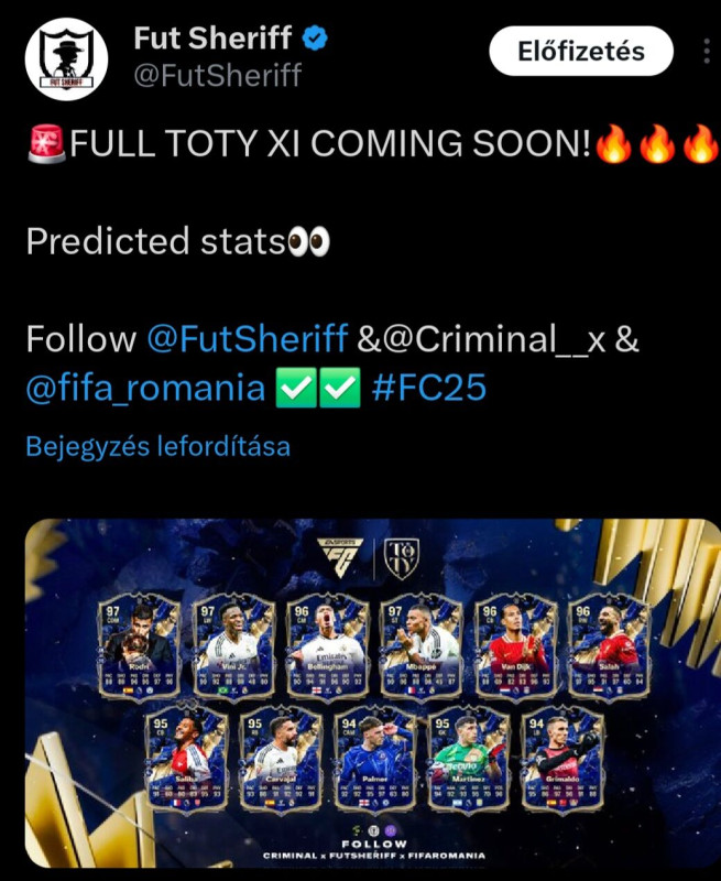 Én kivárnék az új patchel és a lassabb védőket addig adnám el míg tartják az áruk. Simán lehet, hogy visszatérünk arra a pontra mint az egyik régebbi fifában ,hogy a szélsővédők lesznek a cb-k is. Igazából az új Stones lap vagy a klaiberes evo is mutat hasonló jeleket. Na meg évekig szerintem a toty cb-k pace mindig megmutatta nagyjából a gameplayt. Volt amikor egy Ramos-VVD 82-84 pacel is toty volt és jók voltak most meg 90+ pace lesz Salibabának is.
