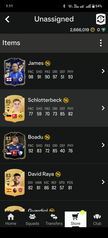 IF-ből van 36 db ami eladható. Rare goldból meg 5 db kapásból ami 90-es, meg kb. 5-6 db 88-89, szóval maradt szép számmal még Bale kirakása után is. -