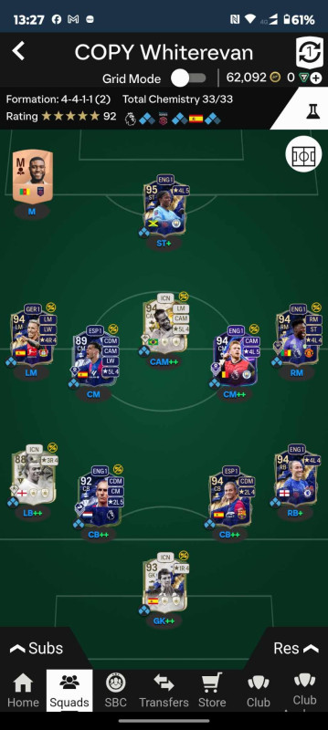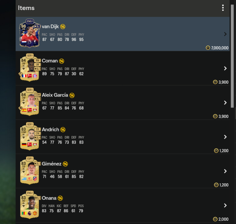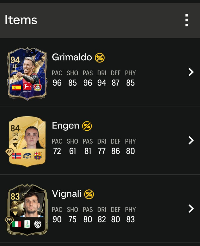 Én tegnap meguntam a 20*82 grindolását. kb 50 pakkból semmi. Vettem két 1500pontos csomagot a store-ból garantált Toty HM-el. Az elsőben Musiala akinek először megörültem aztán látom csak 60k-t ér. Ettől függetlenül próbálgatom majd. A másikat ma reggel vettem meg és Haaland volt benne. Pont csatárra volt szükségem, de építhetem újra a PL-es vonalat a csapatomba. MA is csináltam 20 db 82x20-at de semmi. Talán majd jövőre. Kínomban megcsináltam Pedrit a maradék fodderből, pedig a középpályán megvagyok, egy CDM kellene még oda. Barellát nem tudom már linkelni és Lampard EVO 89-es lapja nem túl jó védekezésben.