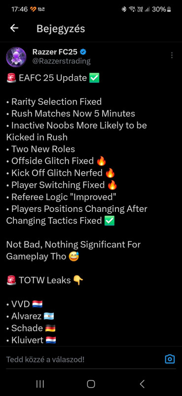 Nálam is ez van. El is adtam az összes vett játékost mert teljesen mindegy ki játszik az adott poszton.