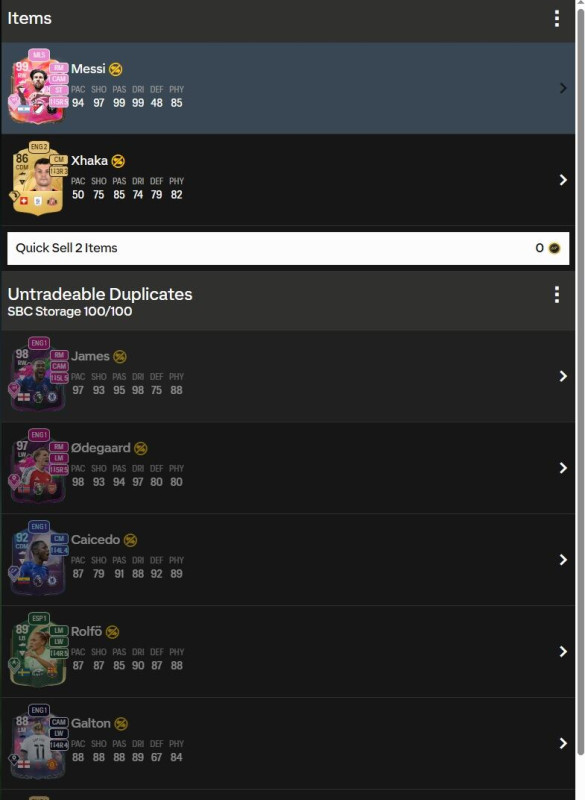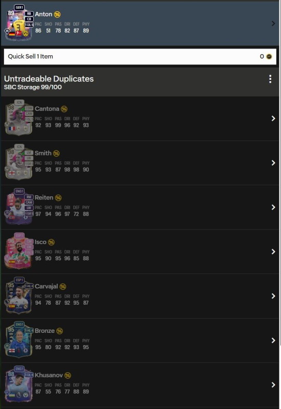 Hát én kirakom a player SBC-ket, és ami abból jön az megy QSbe. Kivéve a chemi style-ok, mert azokat klubba rakom, és külön adom el, mert van köztük olyan ami 3-4K-ért is elmegy. A szines lapok ezekből ritkák, de ha véletlenül jön is, az is QS..