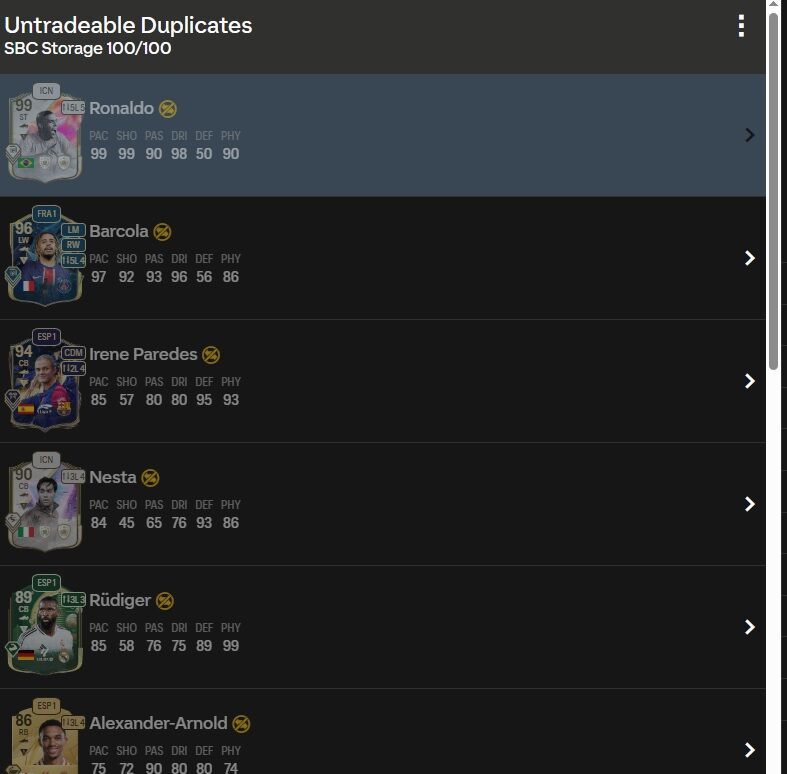 Jött egy Cryuff a mai adagból, meg egy dupla Yamal...a többi a 99es jányok közül került ki. Már nem tudtam nem duplát kivenni, és Gullit továbbra se jött, szóval bekaphassa a játék