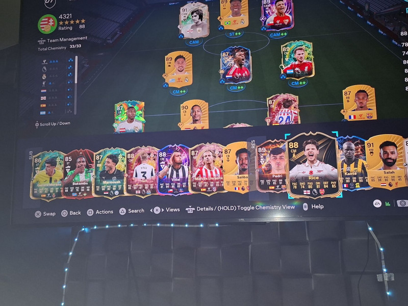 Hátul most eppen Dante új lapját fejeztem be, beraktam Ibanez evo lapja mellé. LB-be kiraktam a Hato evomat, RB pedig Cambiaso UCL lapja van, aki kirobbanthatatlan már jó ideje.Padról gold Bonmati, 88-as winter tech+ Pina meg Simeone 86-os UCL lapja szokott bejönni. Ott van még 89 Beckham, aki szeretek nagyon meg a 85 evo Camavinga, aki bevethető.