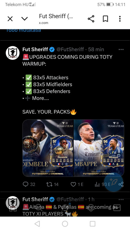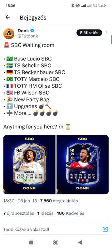 Liga SBC-kre figyeljetek amúgy, holnap lejárnak és ki tudja mit frissítenek rajta. Én most beleszórtam minden lapomat, ami ezekbe kellett.