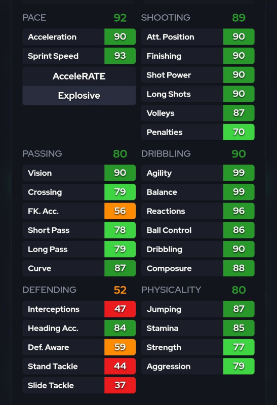 Hülyén van megcsinálva..nekem tavaly volt egy csucsevom Harry kane 97 overallal a goalkeeper statokon kívül minden 99volt mèg az utolsó alstatok is....