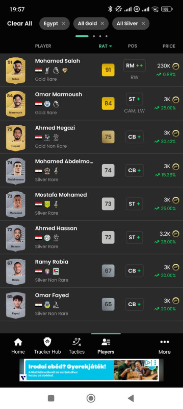 Kb ennyi egyiptomi lap van csak Salah-n kívül. Jól fel is verték 2 nap alatt az árakat.
