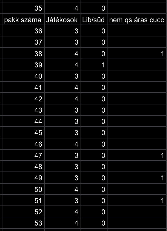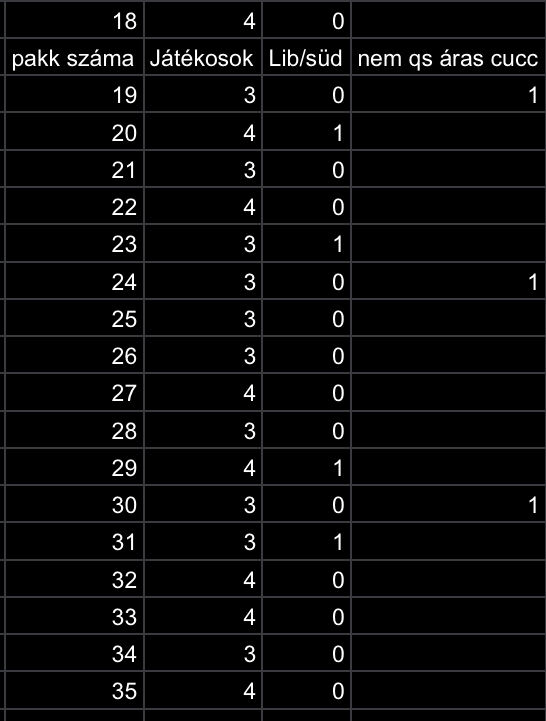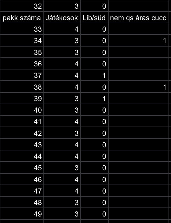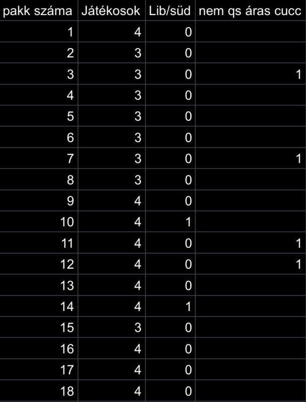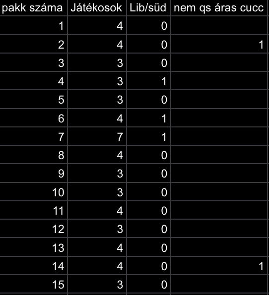 Átlagban minden 5. pakk adott, de nagyon egyenlőtlen elosztásban, hirtelen 3-at, aztán semmi.
