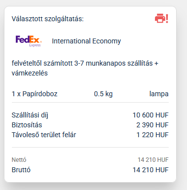 mindezt raadasul ugy hogy eu-n kivuli (+afa).regen volt olyan, hogy ilyen esetben a kosarnal volt ott egy opcio, hogy kerem a szamlat az egeszrol es akkor o szepen levonta a plusz szallitasi dijakat es csak azt fizettem amennyi tenylegesen volt (pár mm-es kis alkatreszekrol van szo).