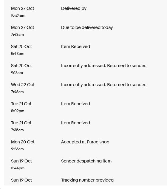 Azt, hogy a termék vissza szállításra került az eladóhoz. Ugyan erre a címre jönnek a csomagjaim, de aznap a futár nem találta, két csomagom és visszament a feladókhoz. A másik gond nélkül újra elküldte, csak ezzel van a baj.