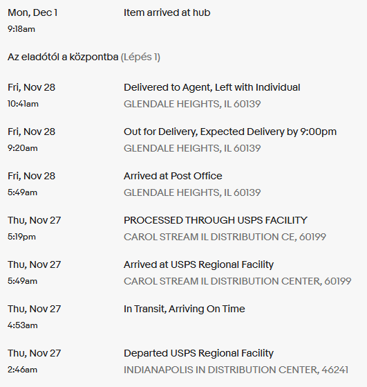 carol stream, ez csak egy kozbulso pont, hub. onnan meg fogjak hurcolni meg elinditjak eu-ba, lesz meg uj kovetesi szam is, lehet nem is egy.