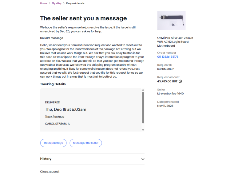 Ezt a választ kaptam az eladótól segítenétek értelmezni? Azt nem értem , hogy milyen módon vegyem fel a kapcsolatot az Ebay-el. Vagy félreolvastam valamit? Van valami külön opció az ilyen esetekre?