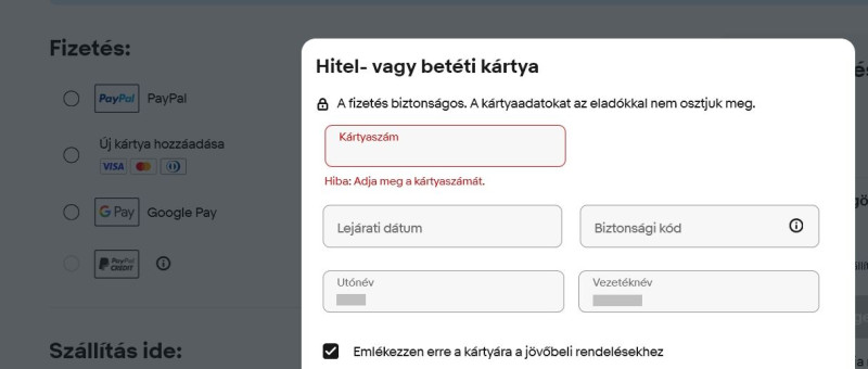 Ha gyakran vásárolsz menthetsz el bankkártyát, hogy ne keljen sokszor kitölteni, bár erre is van opció, mert némelyik jelszókezelőben lehet ilyen adatokat felvinni és akkor ott tárolódnak a bánkártya adatok nem az eBayen.