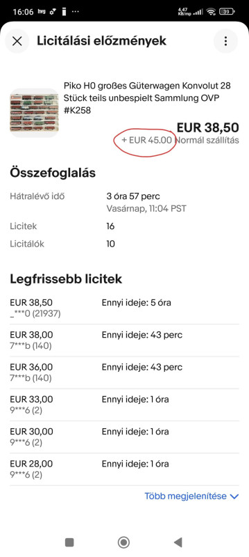 De ha a licitek előzményeit megnyitom (kiváncsiságból ránéztem), akkor valamiért 45Eurot ír. Nem tudom, h miért.