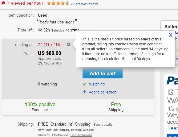 Olyan kérdésem lenne hozzátok, hogy szeretnék megvenni egy használt terméket ebay-en azonnali vásárlással. Viszont az árnál van egyszer 21***Ft a "buy it now" lehetőség mellett, rá is kattintottam, ott is ez az összeg szerepel, de van egy "tranding at :27***ft-al, és nem tudom, ha megveszem azonnal akkor a kevesebb összeget kell fizetnem, vagy a többet? Ilyennel még nem volt dolgom, és az olcsóbbik áron be is vállalnám. Szerintetek? Beszúrom képként is, hátha úgy érthetőbb, mert nem biztos, hogy tökéletesen fogalmaztam meg a kérdést