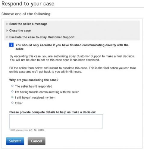 Igazából azért indított a case-t, mert egy levelemre sem válaszolt az eladó. Bár nem akartam reklamációt indítani, azt hittem, ezzel csak egy kicsit nyomatékosabban rászólnak az e-bay-tól, hogy reagáljon az üzeneteimre.