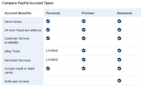 Mások a kondíciók ha havi több eladásod van akkor olcsóbb is, (2,9%-ról indul a jutalék nem 3,4%-ról) ha magyar a regisztrációd akkor a premier az accountod, nem personal, az alábbi képen látod a különbségeket, amelyek nem nagyon vannak