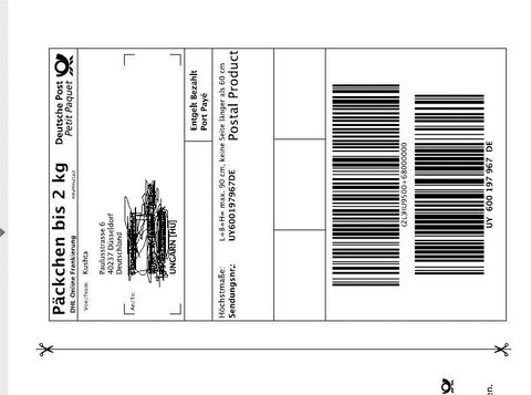 Ott hogy elkészült a címke és az a német posta online felületén készül és 48 órán belül a postára be kell vinni, mert ha nem, bukta a pénzt.