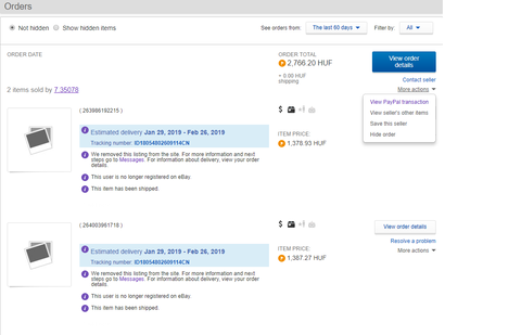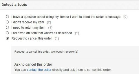More actions, Request to cancel this order, vagy az Ask to cancel order, vagy a Contact seller, Request to change an order valamelyiknek működni kellene. Ha ezek nem akkor kéred hogy a PayPal-ról fordítsa vissza a pénzt. -