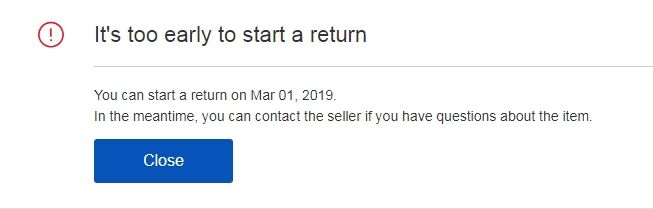 Return an item for a refund - ez pedig: too early to start a return! Ez érdekes, mert most is azt írja, márc. 1-én tudok return-t indítani. Az pedig ma van, mégsem megy a dolog. Mindenhol "contact seller" a végállomás.Mindegy írtam Paypalnak, tiltsák le a tranzakciót. Vagy ez se működik?