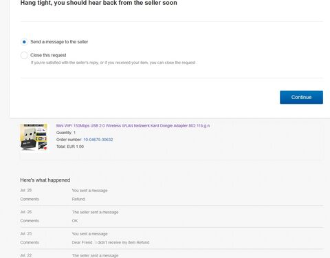 Van egy kis gondom az ebay-nél. Vettem egy gyűrűt június 25-én. Az eladó a mai napig nem adta fel, ráírtam, hogy mi a helyzet, de nincs válasz. Vitát akarok nyitni az ebay-nél, de nem tudok, mert azt írja, hogy a termék úton van, és azt írja vegyem fel a kapcsolatot az eladóval. Paypal ugyanez, avval a csavarral, hogy menjek az ebay-hez. Hogy a fenébe jutok a pénzemhez? Köszi, ha van valami tipp.