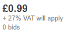 Már írtam, ha nem éri el a leütési érték a 150 €-t (126 £) akkor az eBay kötelezettsége az áfát beszedni, így fizeted rögtön.