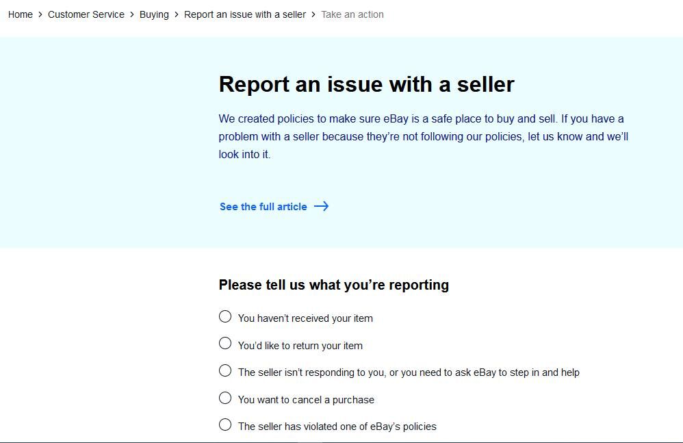 Van valakinek ötlete, hogy az eBay oldalán hol tudok panasszal élni egy eladóval szemben, mivel nem veszi fel velem a kapcsolatot (hibás teljesítés miatt)? Vagy szimplán "contact us"?