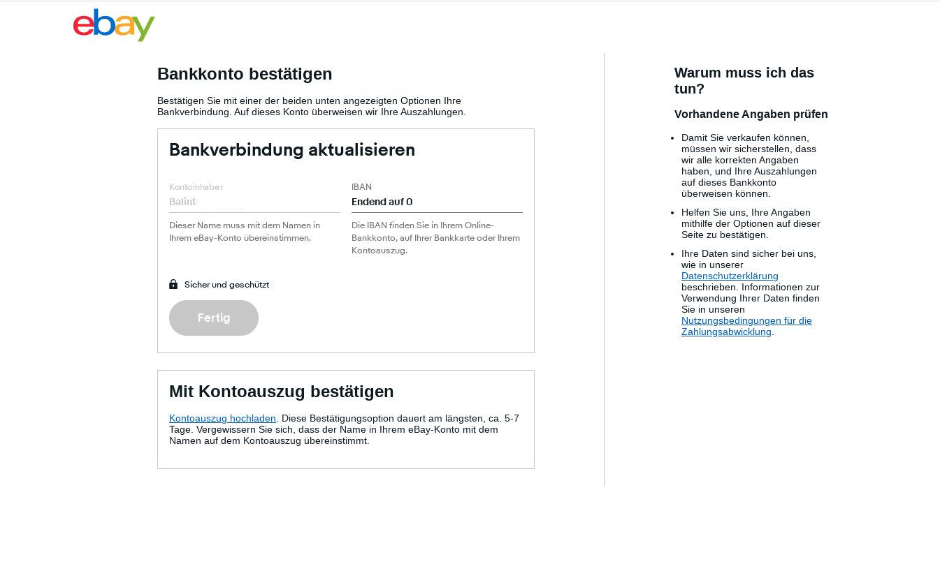 a Zahlungen részhez a Auszahlungseinstellungen oldalra kerültél és ahol a megerősítés módjaiból kellett választani?Ha megnézed a neved alatti menüben a