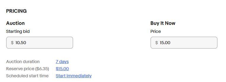 Muszáj mindenkinek vagy emelni a fix árat 30 %-al hogy az induló licit annyi legyen mint amennyit szeretne érte fix árasként megkapni, vagy bekalkulál 30% veszteséget azért mert licittel viszik el, vagy fizet 15 $-os ár esetén 6,35 $ díjat a minimum árért, 42% bukta.A 6,35 $ az hogyan jön ki? Ennyit kérne az Ebay egy reserve price ár beállításért? Igen, de ha több az összeg akkor ez is emelkedni szokott