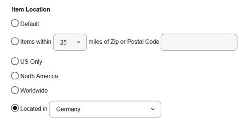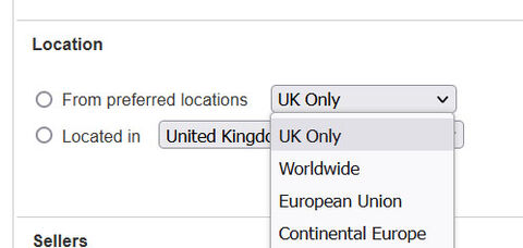 Sajnos változtattak a keresési opciókon az eBay.com-on és nincs Európa választási lehetőség, csak országok, de ez is csak a Advanced search esetén lehet kijelölni, aztán ha van azon a helyen akkor azt adja fel ha nincs akkor 0-át ír és alatta felsorolja ahol található