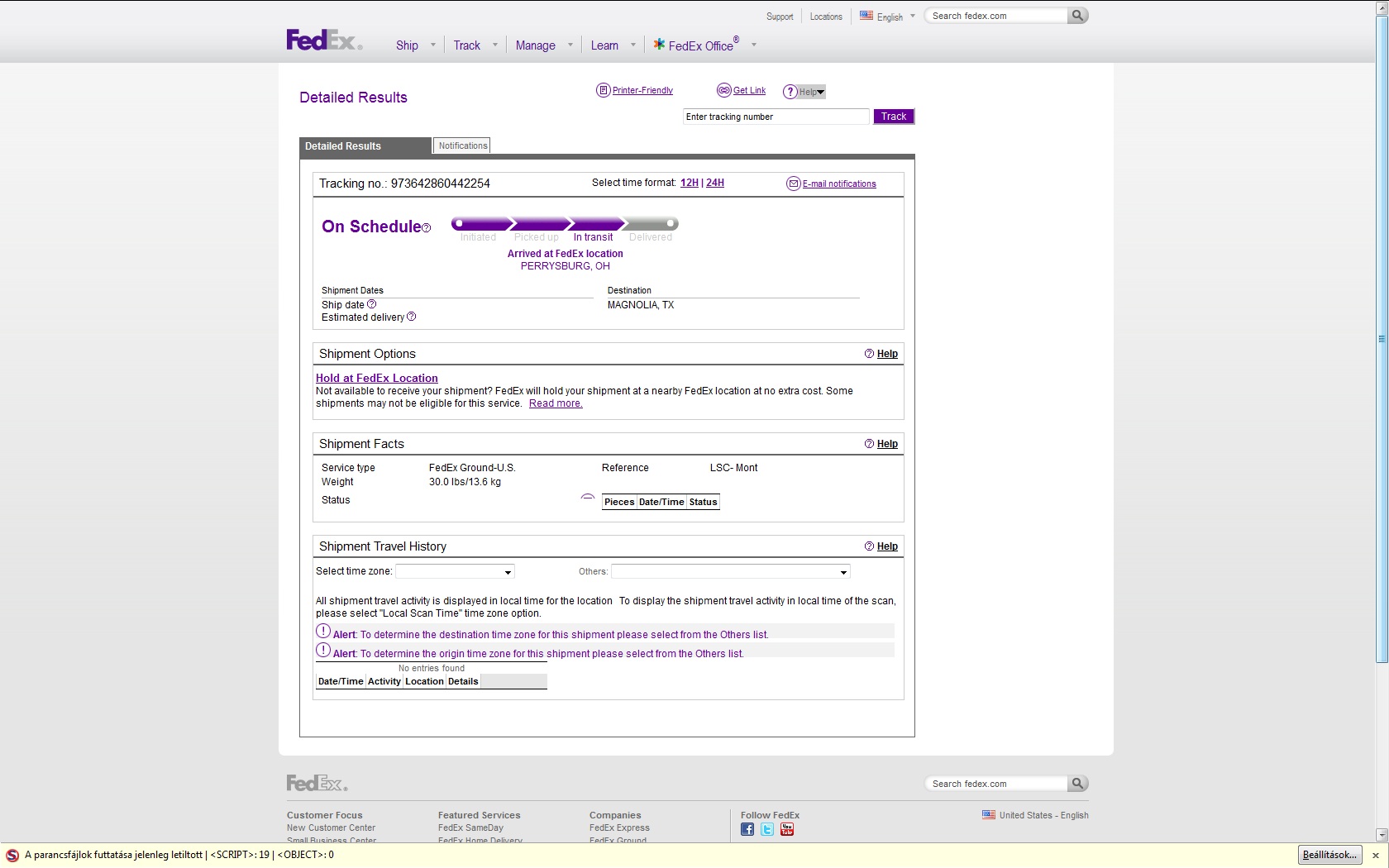 Kaptam ma egy levelet a FedEx-től , de hogy miért azt nem tudom, linkre kattintva ezt dobta: