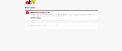 Unfortunately, the seller cannot accept your bid on this item. This can happen for a couple of reasons. For example, the seller may be limiting how many items you can buy from him or her in a specific time period. Learn more.Mi lehet ez?