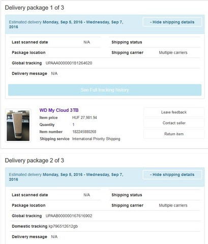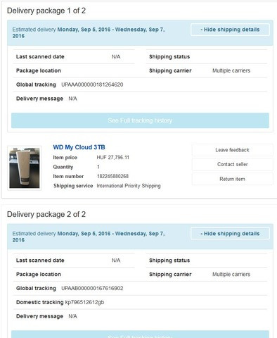 Ha megnézem a rendelési részleteket, akkor most már 2 szekciót is látok. Van Delivery package 1 of 2 és Delivery package 2 of 2. Egy hónapig nem rendeltem ebayről és most ez új dolognak tűnik. Vagy ez eddig is így volt?