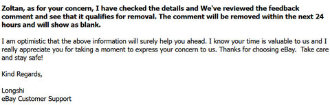 ebay-en, vásárlóként kapott pozitív visszajelzést hogyan lehet töröltetni?